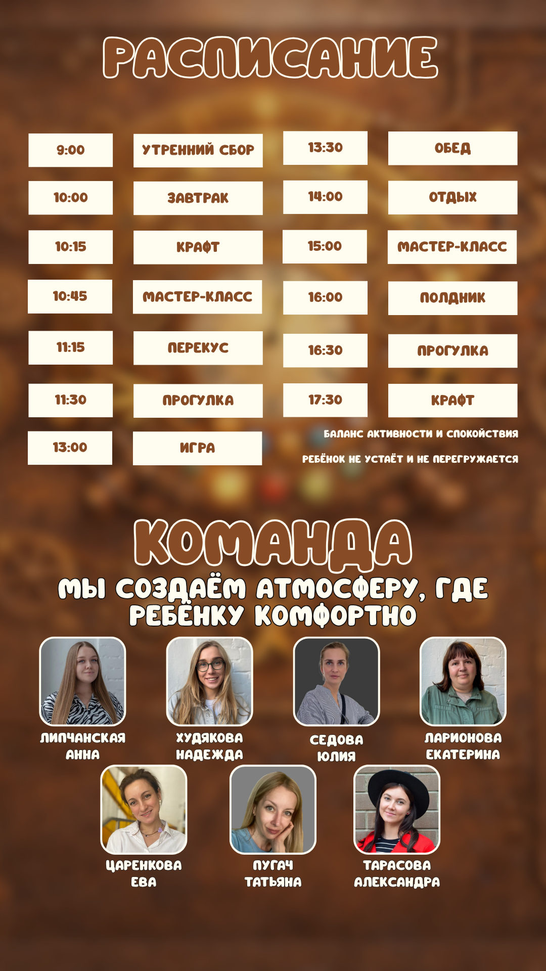 - c 9:00 до 14:00/с 14:00 до 18:00 (питание оплачивается отдельно)